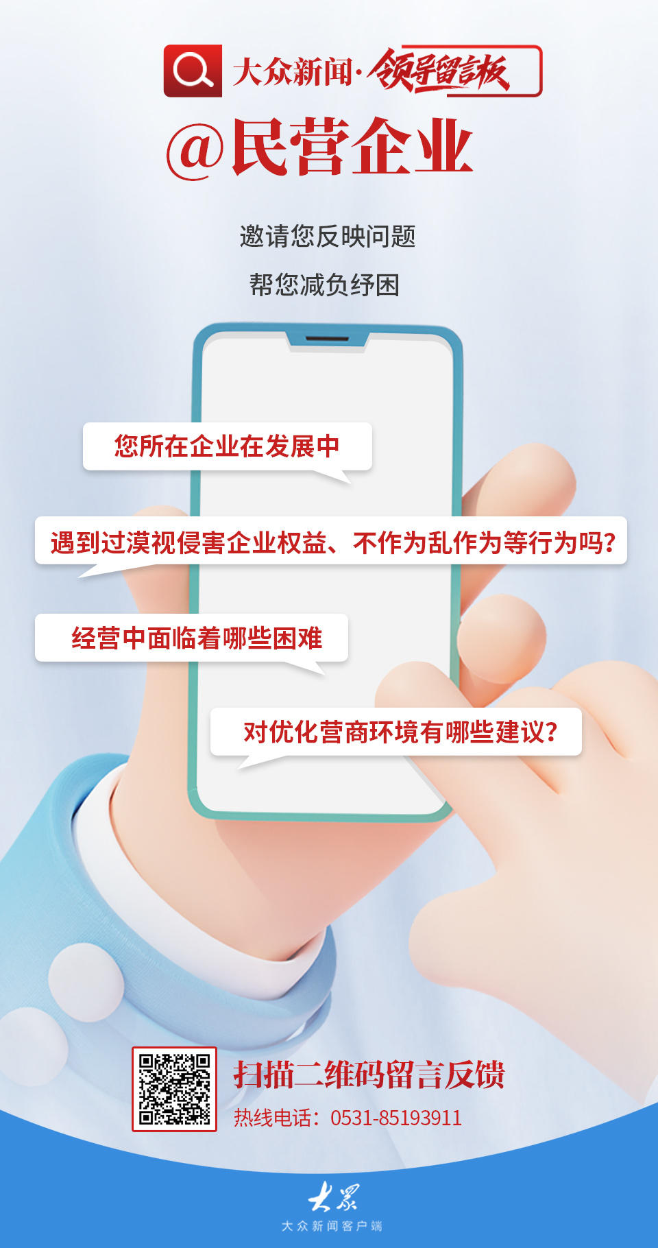 大众新闻·领导留言板@民营企业:邀请您反映问题,帮您减负纾困