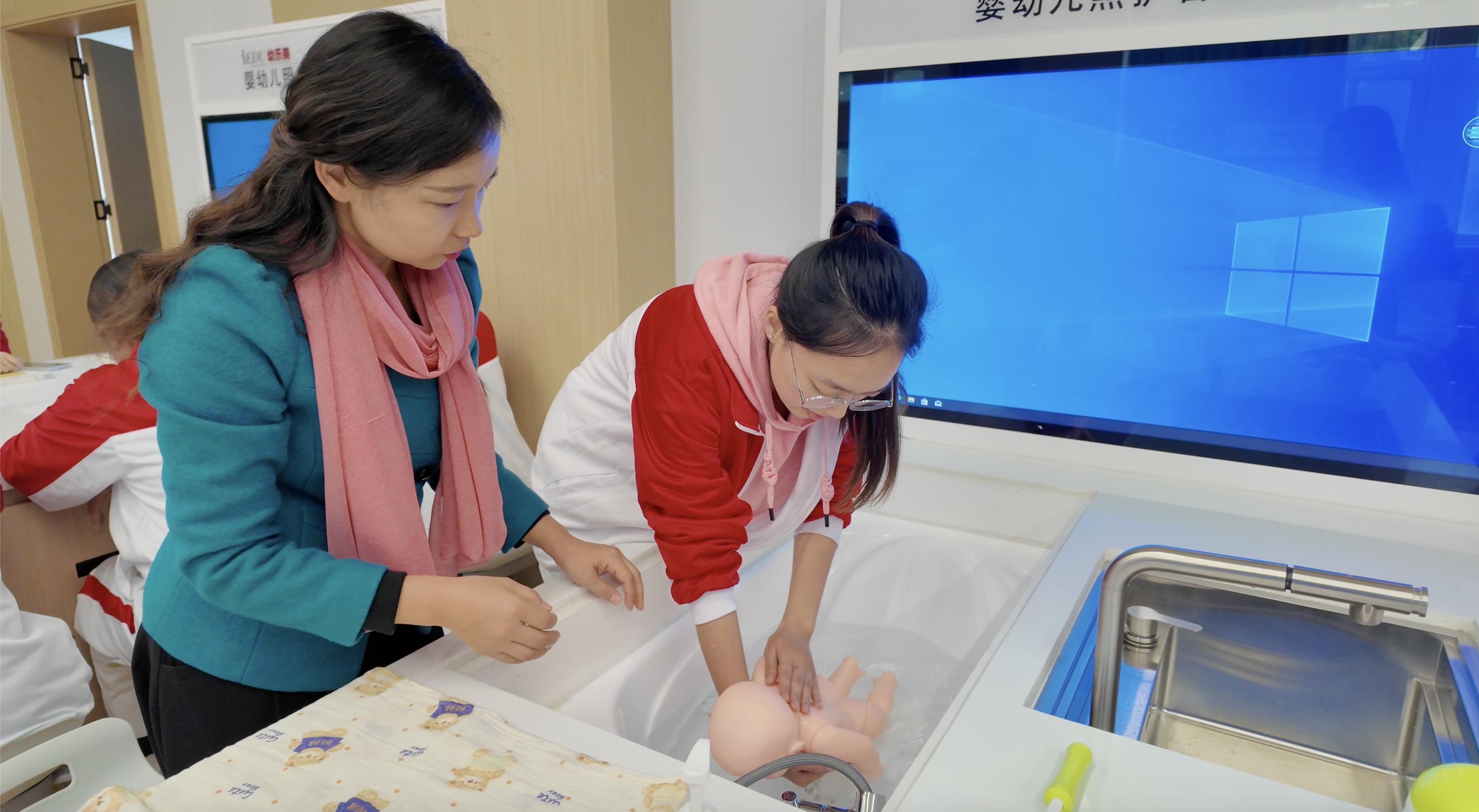 “这是学生们需重点掌握的能力——回应性照料。”齐鲁师范学院该专业负责人蔡云进一步解释说,“比如,即使在换尿布这样常规的流程中,照料者也需要全程与婴幼儿进行眼神、语言交流,从细微的互动中感知他们的真实需求。”