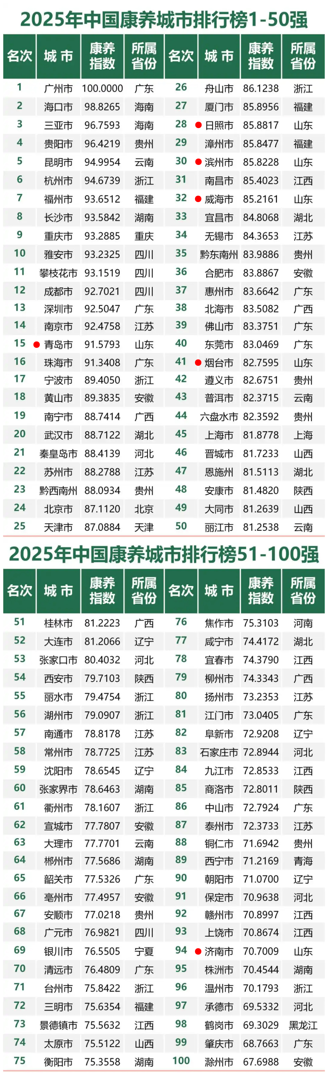 2025中国康养城市百强榜发布,山东为何这6市上榜