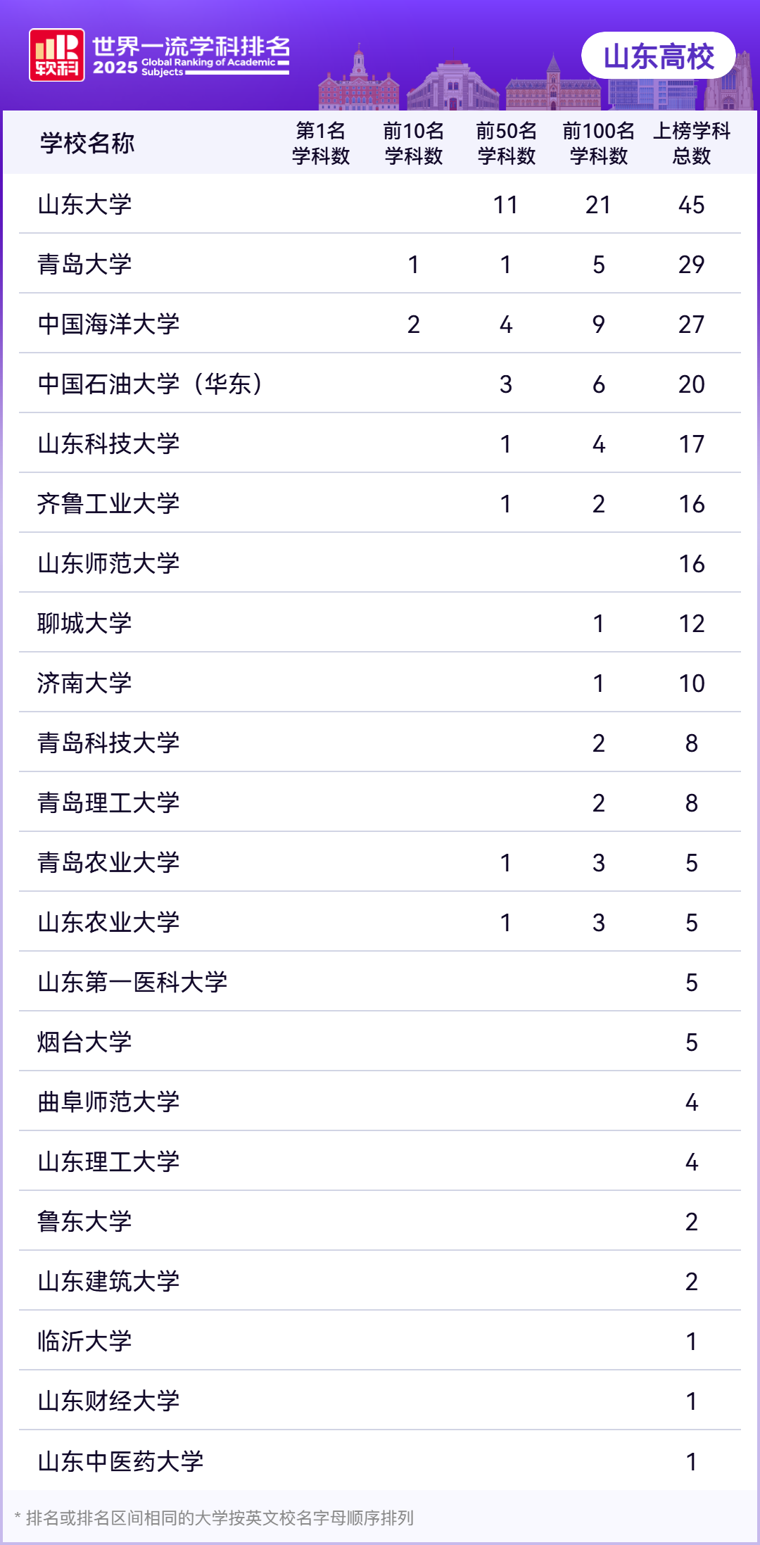 2025软科世界一流学科排名发布!山东成绩亮眼
