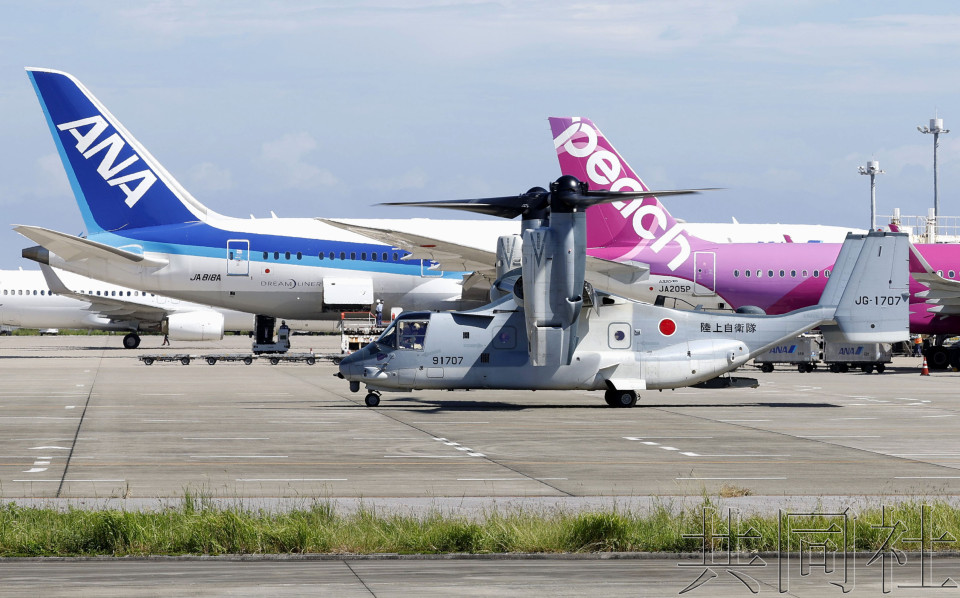 停靠新石垣机场的陆上自卫队V-22“鱼鹰”运输机。