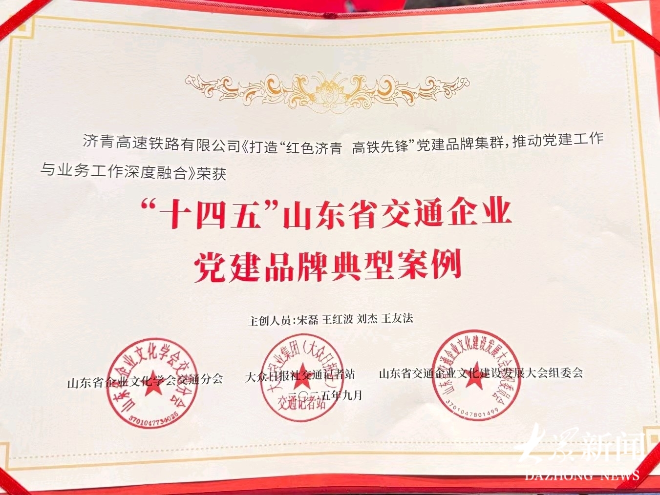 强化政治优势,推进好党业融合这个关键路径。公司党委积极探索“党建+”模式,打造潍宿高铁至青岛连接线、烟台交通建设“党建+”共同体,推动党建工作与高铁建设、运营管理、科技创新等中心工作同频共振。在高铁建设一线,设立党员先锋岗、青年突击队,激发党员在急难险重任务中打头阵、当先锋。深化党建品牌创建,“红色济青·高铁先锋”党建品牌荣获全国交通运输“创新力文化品牌”、新华网年度党建品牌、“十四五”山东省交通企业党建品牌典型案例等,充分彰显了党建赋能业务发展的强大生命力。此外,公司党委还结合工作实际,深化党建对标交流活动,对外到其他省属企业,对内与集团内部兄弟单位互学互鉴,取长补短,推动党建与业务在机制、载体、考核上全面融合,以高质量党建引领各项工作高质量发展。