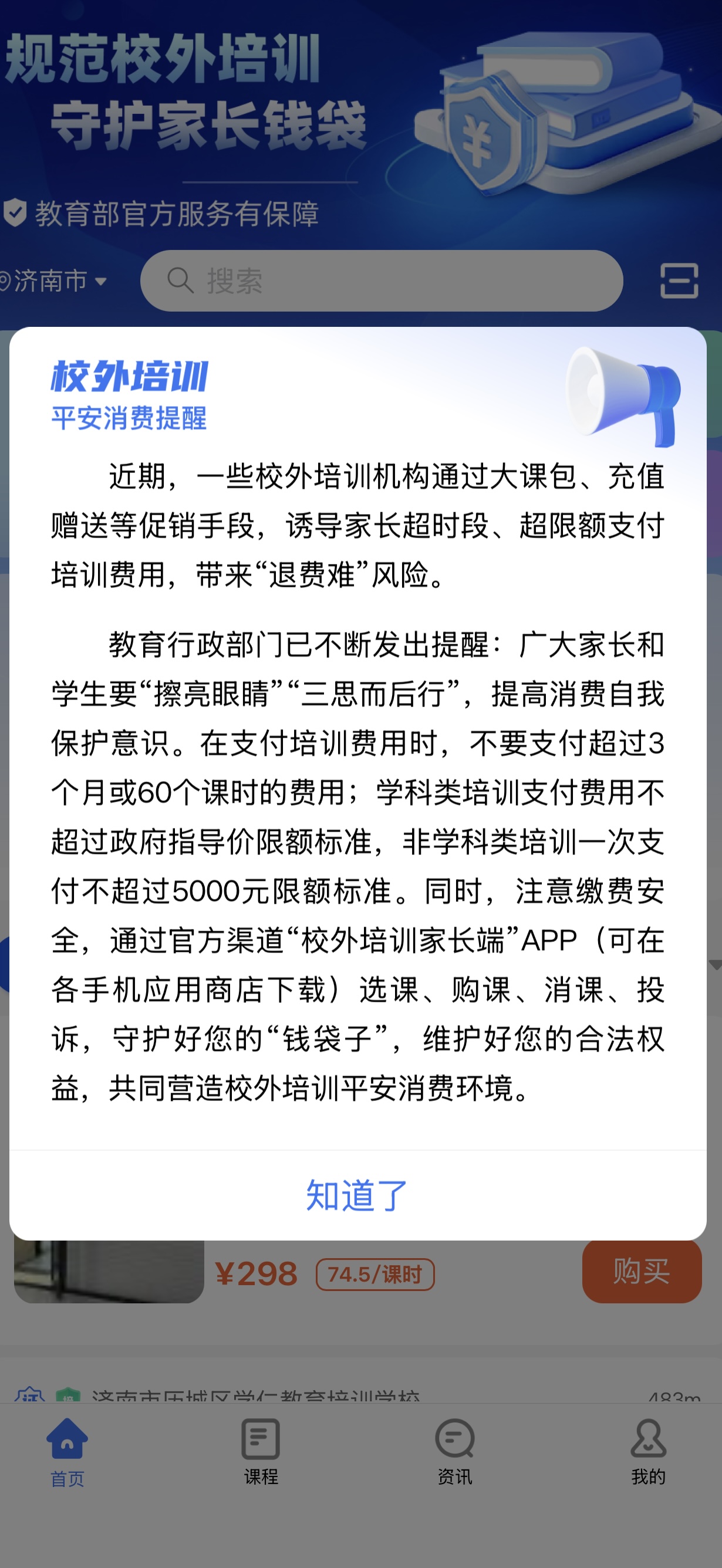 校外培训家长端APP实行“一课一消”