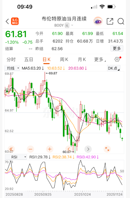 布伦特原油期货走势