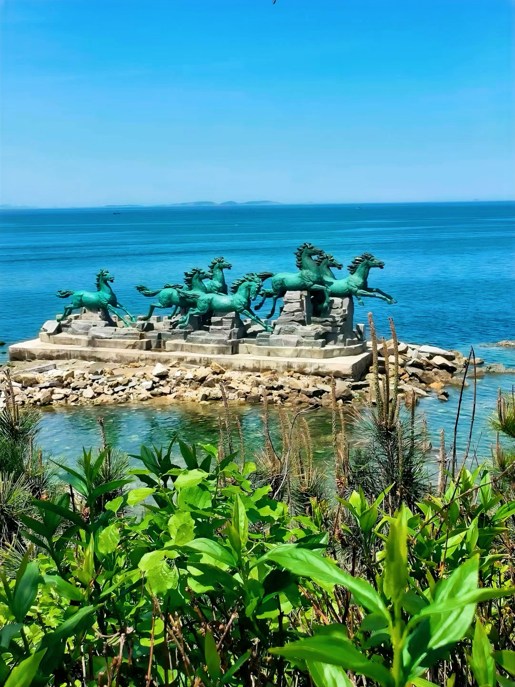 养马岛畔,碧海蓝天为幕,青铜奔马雕塑傲然矗立在礁石之上,骏马身姿矫健,似欲踏浪追风。木质栈桥向海延伸,凭栏观海,勾勒出一幅悠然惬意的海岛闲适图景。王文娟张贞史佳乐摄王文娟张贞史佳乐摄点击报送作品>>>专题|“大美山东”主题活动