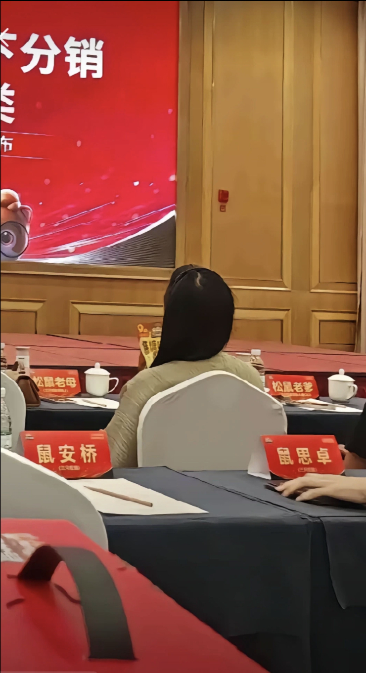 该网友发布的照片显示,在一次分销会上,每个座位都摆放着以“鼠”字开头的名牌。此外,网友还展示了三只松鼠党委名单,上面的姓名也均以“鼠”字开头。记者尝试联系发帖网友,但未获得回应。
