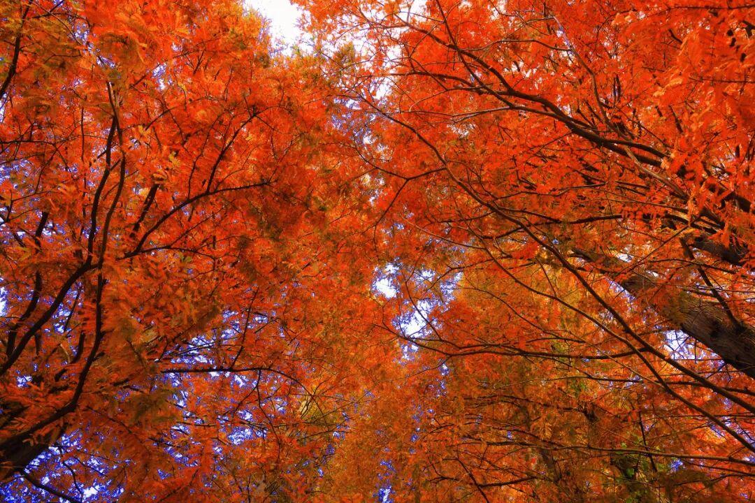 你还记得它夏天的模样吗?那时的水杉林,是绿浪翻涌的清凉海洋。而如今,它悄悄褪去青衫,换上了一身绯红、金黄交织的“冬日限定装”。
