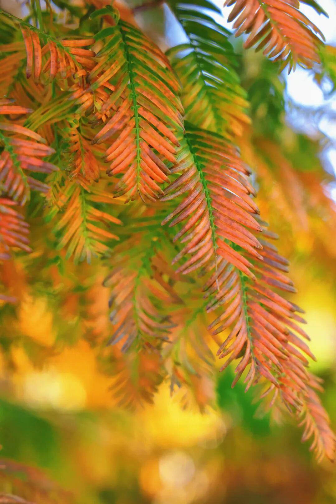 你可以站在林间小径回眸,让红棕色的水杉作为背景;可以低头轻触一片落叶,让阳光在你的发梢洒下温柔光晕;也可以单纯地记录一棵树、一条路,那份静谧与热烈并存的美,足以打动人心。