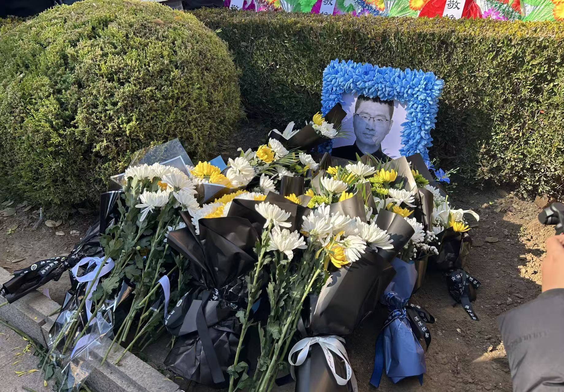 “很心疼他,张军桥是非常纯粹的一个人,我们都觉得应该来送送他!”从事房地产行业的王女士和同事相约来为烈士献花。