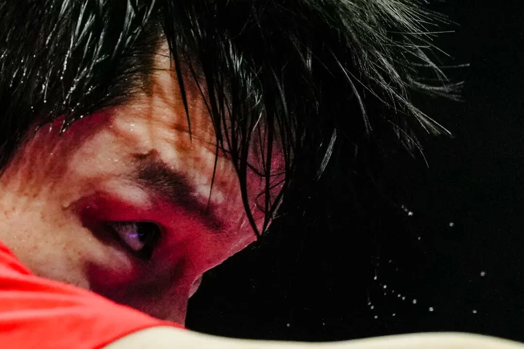 打到6分时,选手拿毛巾擦汗 来源:见水印