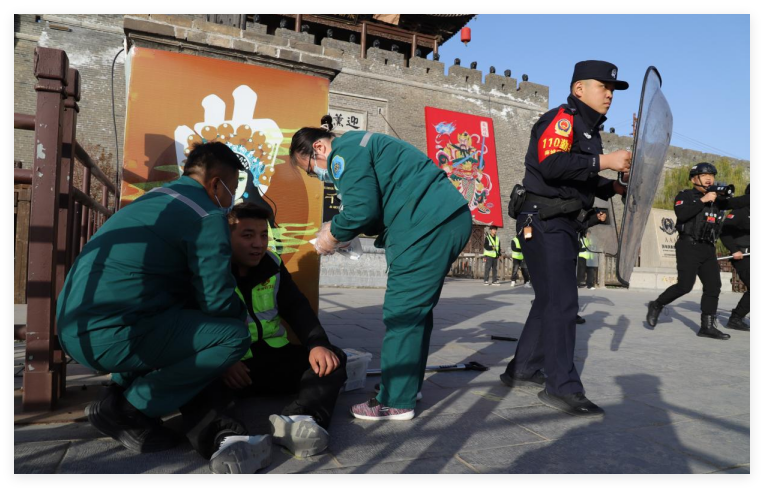 会议期间,防恐处突、游客紧急疏散转移、应急受伤救治、景区消防灭火等多科目应急演练依次开展。演练中,郓城县文旅局、公安局、应急管理局、消防救援大队、人民医院及水浒好汉城景区等多部门密切协作,各类救援装备同步亮相,跨部门联动、多场景模拟、高强度协调的应急处置流程,给与会人员留下深刻印象。