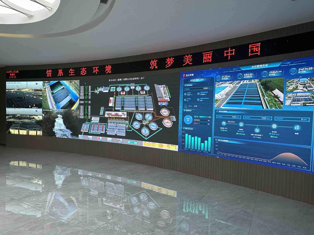 作为中国光大水务有限公司的全资子公司,光大水务深耕水环境治理与水资源利用领域,下辖三座污水厂及一座中水厂,构建起完善的污水处理与再生水供应体系。其中,污水处理总规模达40万吨/日,为区域水环境质量改善提供了坚实保障。在污水处理的控制中心,巨大的电子屏幕上实时显示着各污水厂的处理流量、水质指标、设备运行状态等数据,工作人员通过远程操控即可实现全流程精准管理。“我们打造了精确曝气、精准加药的智能系统,通过数据支撑与曲线分析,让污水处理更高效、更节能。”该厂区负责人石鹏指着屏幕上的实时数据说,数智化管控平台的赋能作用尤为突出,实现了对全流程的实时监控与智能调控,显著提升了节能、降耗和减排的协同效能。