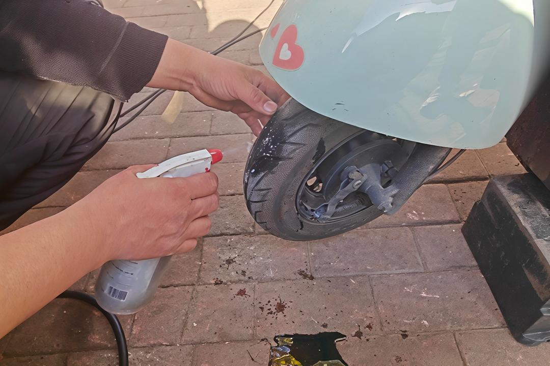 张宝柱刚给一位外卖骑手换好电瓶,附近一位商户就来求援,称自己的电动车前轮扎漏了,着急外出进货。他二话不说,拿起工具就赶赴现场救援,20分钟后,便给商户补好了车胎,仅收费5元。