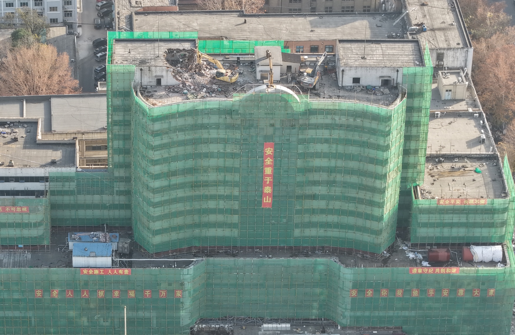 11月28日,济南火车站南广场核心区,随着大型起重机先后两次将三台挖掘机及相关设备吊装至天龙大厦15层楼顶,天龙大厦整体拆除施工启幕。这标志着济南火车站综合客运枢纽工程项目迈入实质性突破阶段,为打造综合交通枢纽站城融合典范按下“快进键”。