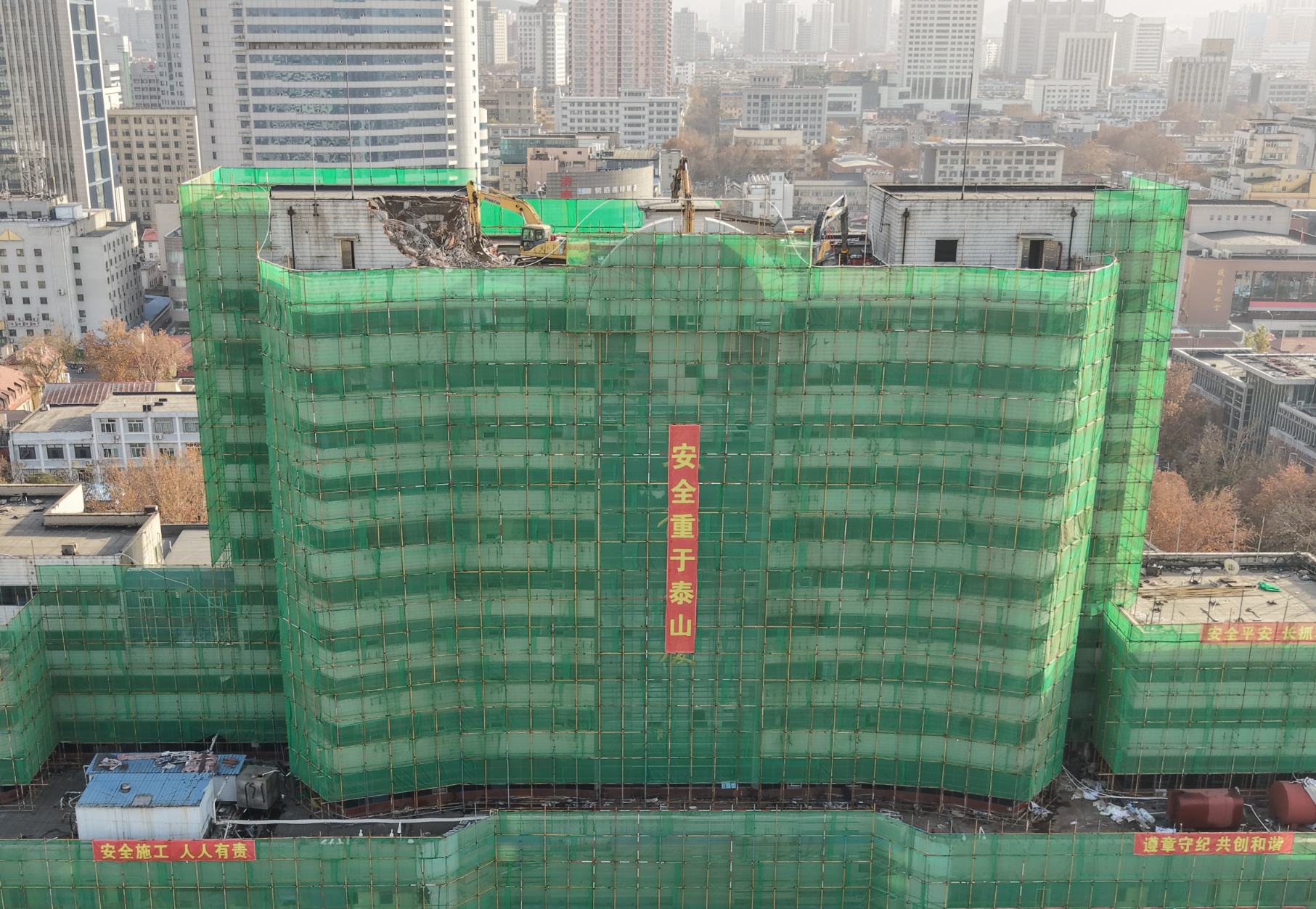 济南火车站南广场天龙大厦开始拆除