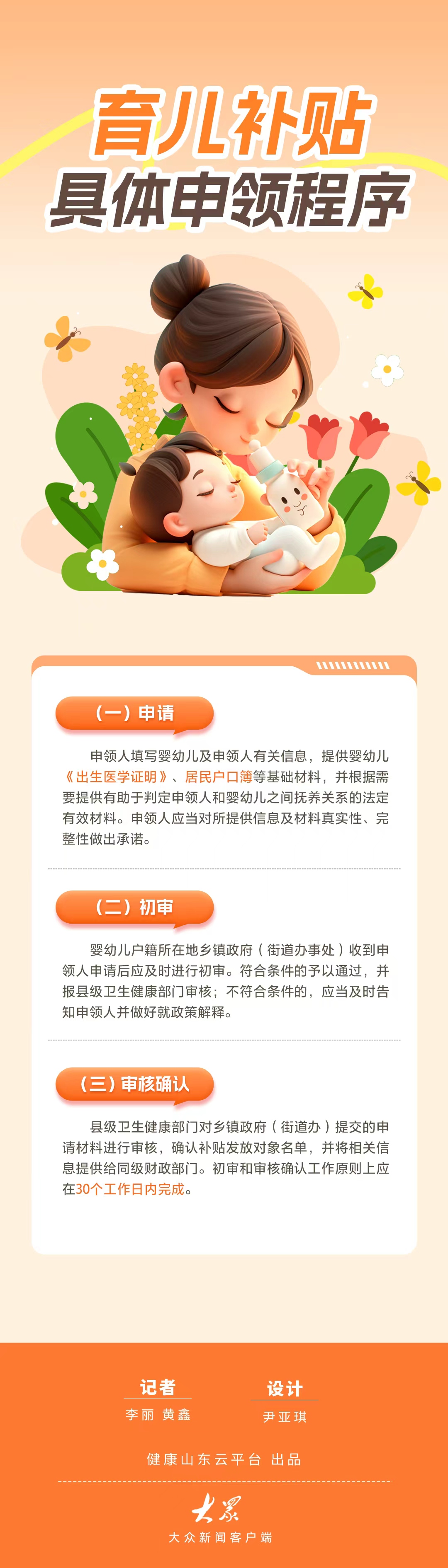 长图|山东育儿补贴申领程序三步走!