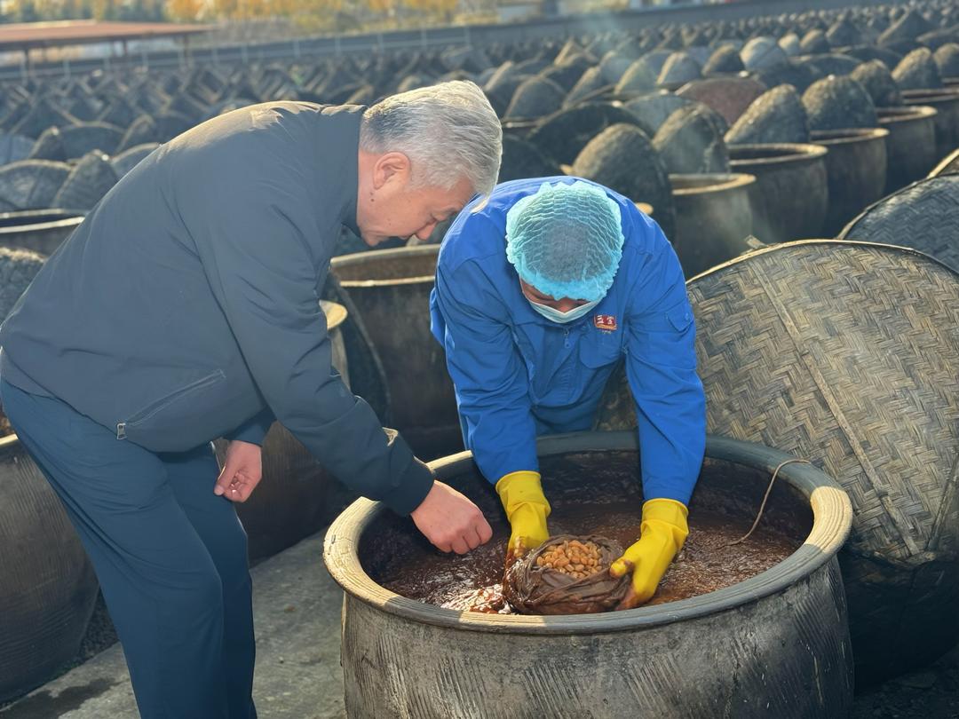 12月2日,踏入坐落于济宁的山东玉堂酱园有限责任公司天然酱菜晒场,一幅壮阔的酱香画卷骤然铺展。三千多口酱缸如列阵的兵士,在暖阳下整齐排布,缸身的裂纹泛着岁月的痕迹,缸口蒸腾的酱香混着冬日的清冽,撞入眼帘的瞬间,便让人心中涌起难以言喻的震撼。