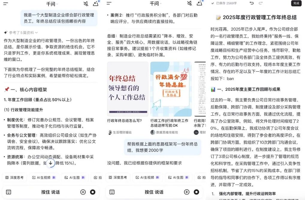 咱直接拿一个打工人每年底都逃不掉的场景开测:让千问做一份「年终工作总结汇报」。