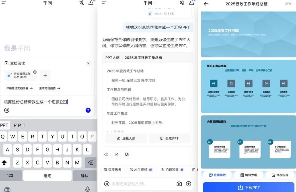 AI能做PPT其实不是新鲜事,千问这次升级的核心在于: