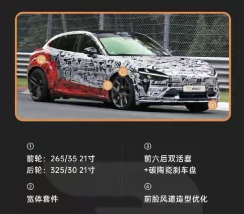 底盘升级碳陶瓷刹车盘、21英寸宽胎(前265/35R21,后325/30R21)及宽体空气动力学套件,极限操控能力大幅提升。