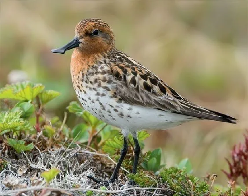 在楚科奇半岛,身披繁殖羽的勺嘴鹬 | MadsSyndergaard, Wikipedia“偷蛋计划”的流程很简单:首先,在繁殖季初期收集鸟蛋,以刺激勺嘴鹬当年再次繁殖,增加产卵的总数;被带走的鸟蛋在人工条件下孵化;幼鸟出巢后放归,补充野外种群的数量。在人工条件下,没有了捕食者和恶劣天气等因素的威胁,“偷蛋计划”的繁殖成功率增加到自然条件下的 5 倍,使每年存活的幼鸟数量增加了 20% [2]。