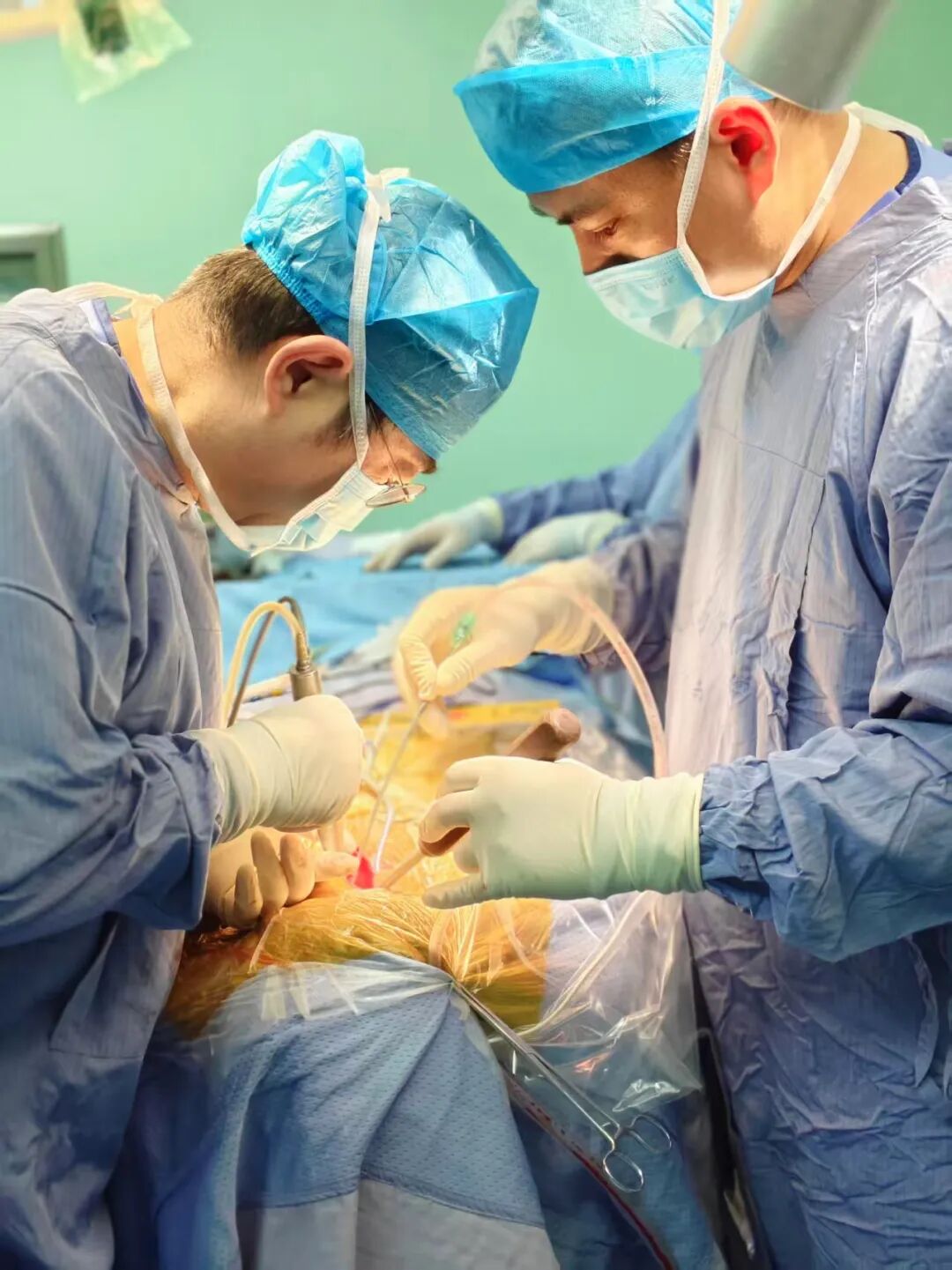 手术当日,多学科团队紧密配合,共同应对挑战。麻醉医师采用清醒插管技术,减少对脊柱的干扰;手术室护理人员与医生共同设计了适应患者脊柱曲度的特殊体位;在搬动患者过程中,全体人员严格执行轴线翻身,避免骨折移位。孙刚主任与纪强副主任带领手术团队精细操作,成功完成骨折复位与内固定,全程出血量仅约50毫升。