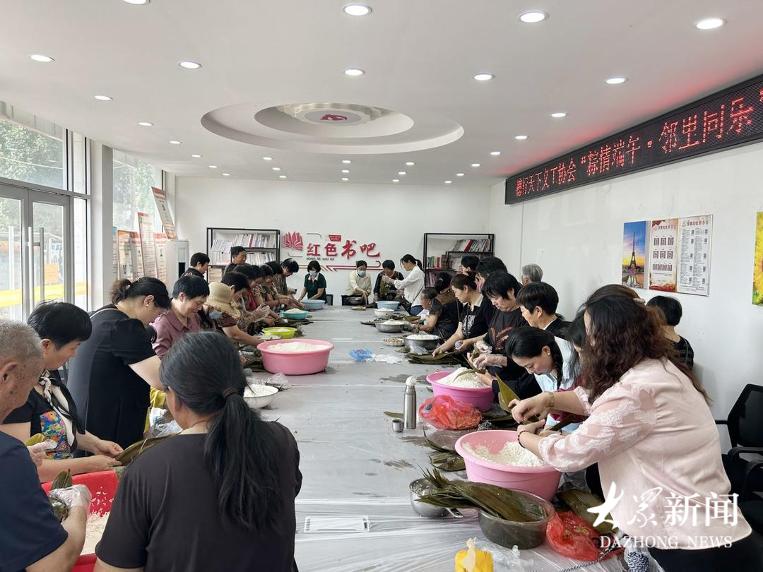 李丽说,2025年端午节,社区准备了500斤米和其他包粽子的材料,因为人太多,没法统一煮粽子,便采取谁包的粽子谁拿回家煮的办法。上百人在包粽子的场景,可把孩子们高兴坏了,社区志愿者便给孩子们讲端午节的来历,讲这一天为什么要绣荷包。2025年重阳节,社区准备了素和肉两种饺子馅,仅猪肉就买了800元钱的。居民在包饺子,志愿者在广场上给孩子们讲为什么会有重阳节,讲尊老爱老是中华民族的优秀传统。