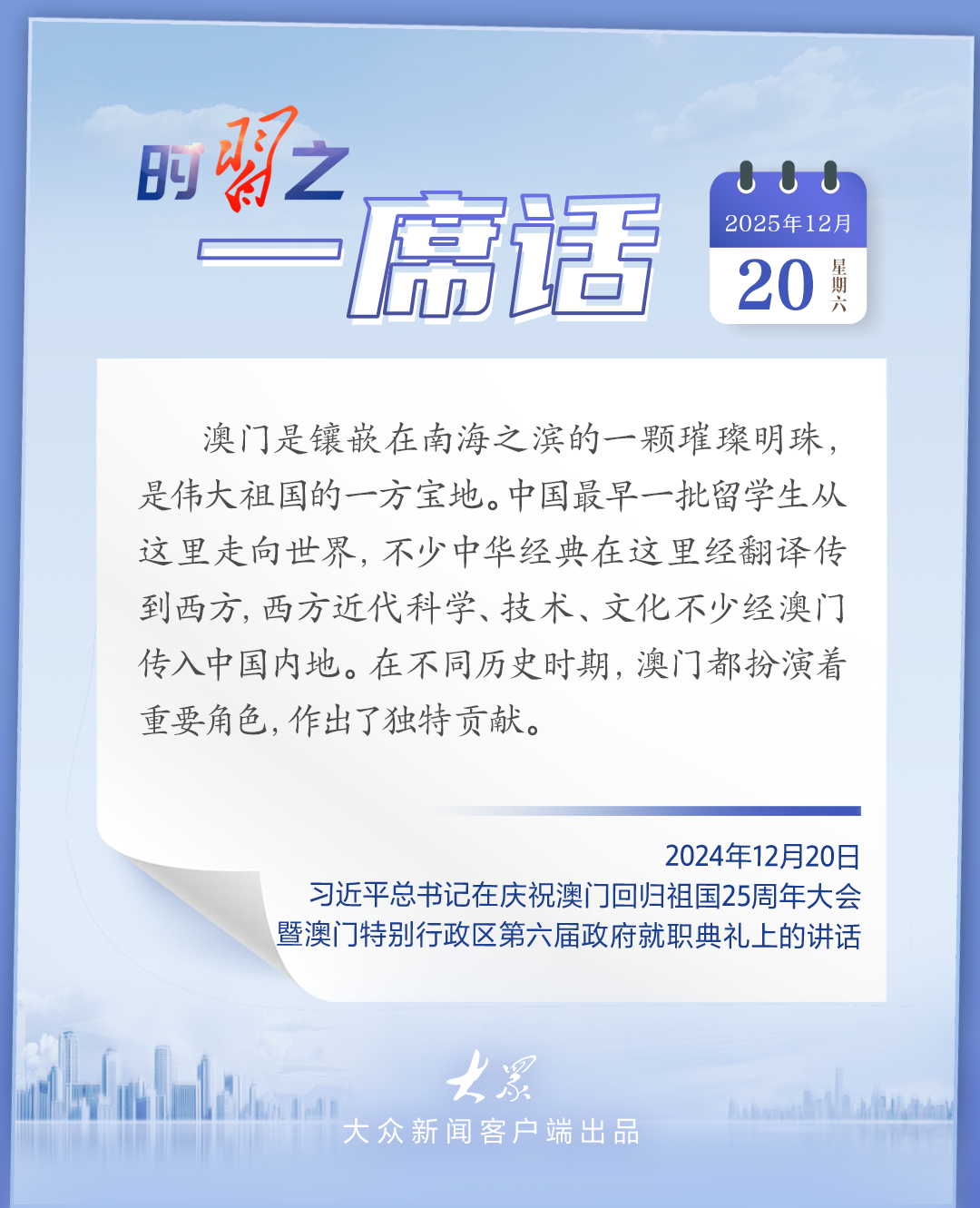 一席话丨澳门是镶嵌在南海之滨的一颗璀璨明珠,是伟大祖国的一方宝地