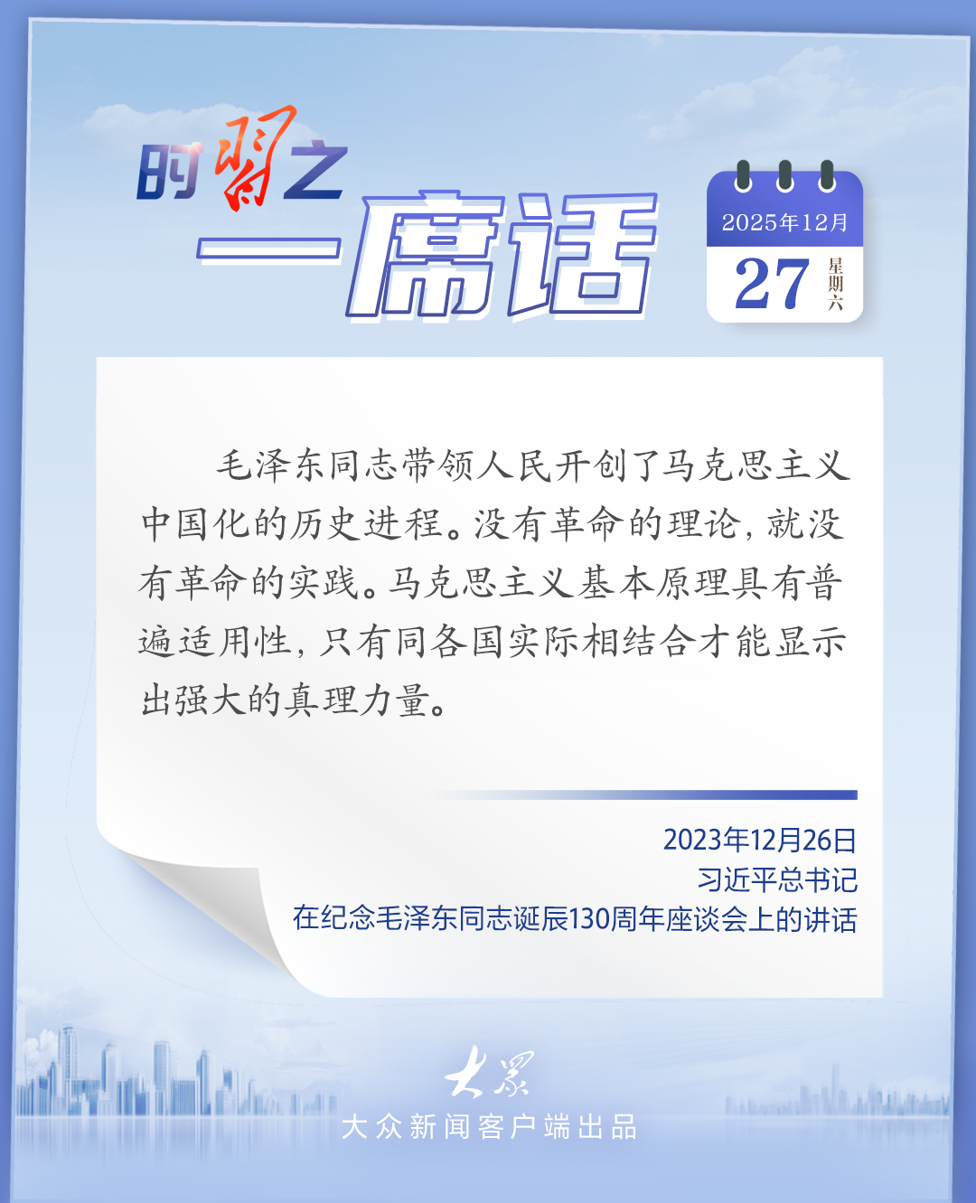 一席话丨马克思主义基本原理具有普遍适用性,只有同各国实际相结合才能显示出强大的真理力量一席话 | 2025-12-27 06:00:00 原创刘祯周 车婷婷来源:大众新闻微信扫码扫码下载客户端责任编辑:刘祯周 崔凯铭