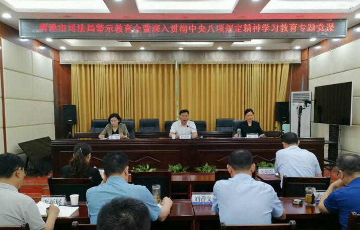 菏泽市司法局将党纪、中央八项规定精神作为理论学习中心组学习、党支部学习和党员干部教育培训的重要内容,举办理论学习读书班,开展青年理论学习小组学习研讨,召开警示教育大会,观看警示教育片。修订和完善财务管理、车辆使用管理、人员请销假、保密工作规定,形成以制度管人管事的工作格局。组织开展廉政风险点排查,公开各岗位廉政风险点。利用干部调整、民主生活会等时机,开展廉政谈心谈话。在重大节日、重要时间节点,开展廉政提醒。