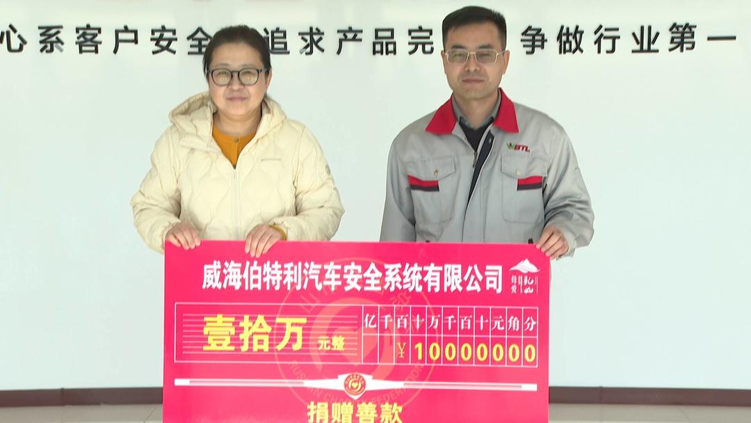 作为乳山汽车零部件产业的龙头企业,威海伯特利汽车安全系统有限公司深耕汽车零部件领域多年,凭借先进的生产技术和严格的质量管控,逐步成长为全国最大的铝合金转向节生产基地。自2012年扎根乳山以来,公司除了致力于经济、社会、环境的统筹发展外,还积极投身公益事业,践行社会责任,以实际行动弘扬慈善文化,传递社会正能量。在此次“慈心一日捐”活动中,威海伯特利汽车安全系统有限公司将 10 万元善款交至乳山市慈善总会。