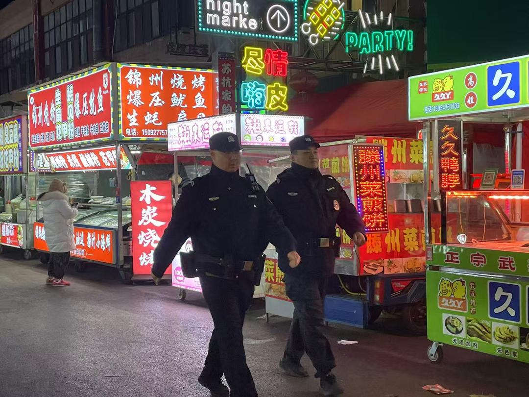 大队科学设置网格“值守点、必到点、必巡线”,推行延时、错峰巡防,在商圈、市场、广场等重点部位定点值守,屯警街面、动中备勤,确保街面“见警察、见警灯、见警车”。构建立体化巡防模式,对治安复杂区域开展高密度巡逻。每日投入40余名警力、10部巡逻车,配齐防护装备,保障响应迅速。专职车组24小时不间断巡逻,实现防控无死角。