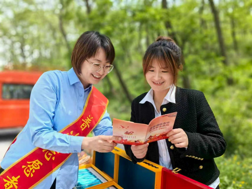 普法志愿者在“沿着花路去普法”活动中为游客讲解法律知识。潍坊市司法局供图。