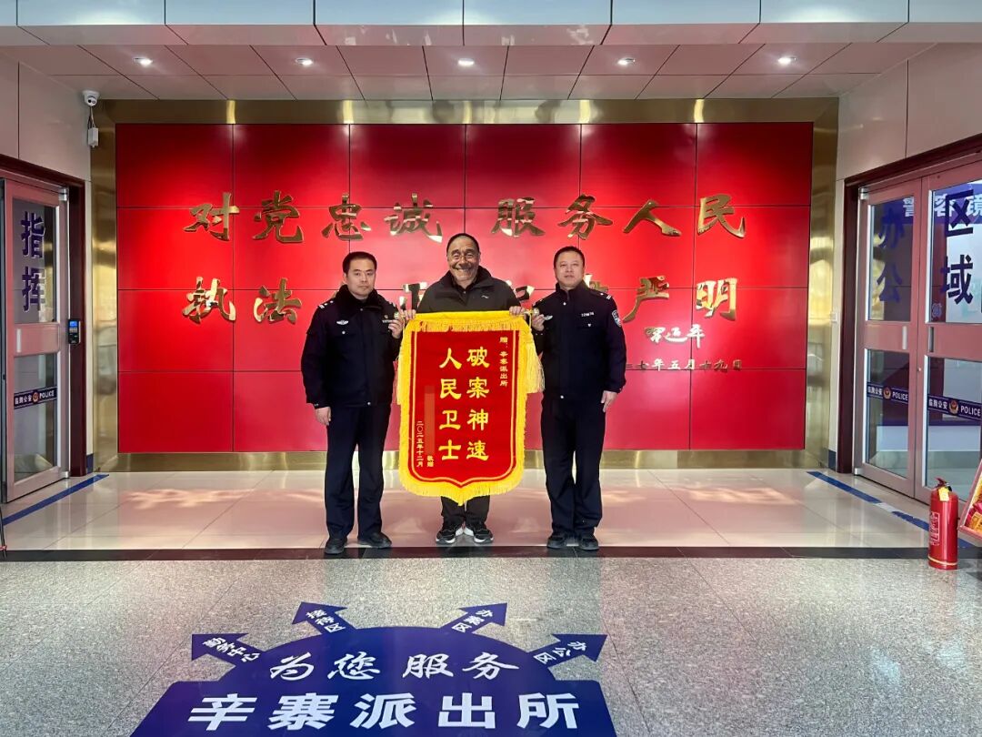 得知案件破获的好消息,老张难掩内心喜悦之情,专程来到辛寨派出所,将一面写有“人民卫士 破案神速”的锦旗送到办案民警手中,对民警心系群众、快速破案的行为表示敬佩与感激。