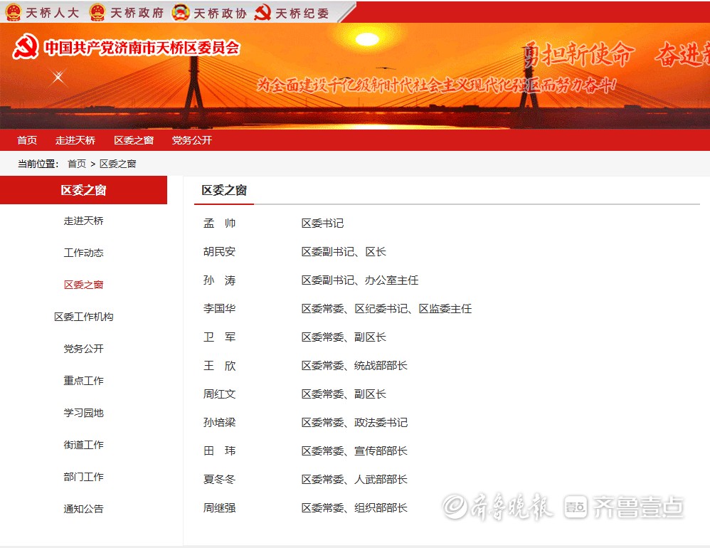 中共济南市天桥区委员会网站“区委之窗”更新显示,孟帅已任济南市天桥区委书记。至此,济南“80后”区县党政主官扩充至5位,孟帅也成为济南首位“80后”区委书记。