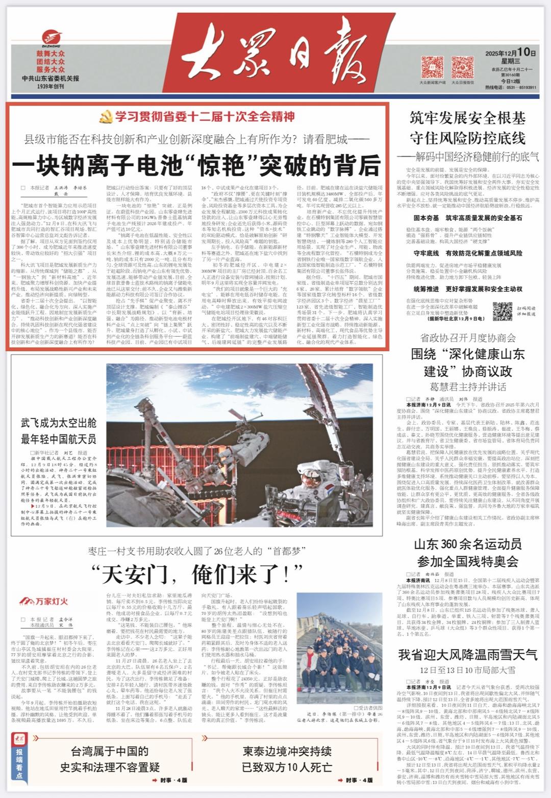 大众日报·泰安一周:头版头条重磅报道肥城加速发展新质生产力,钠电池实现惊艳突破;莱热入泰上头版