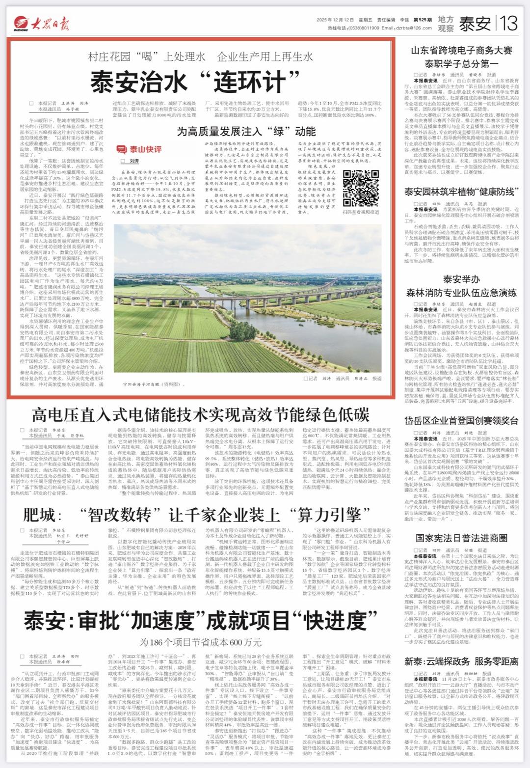 12月12日,大众日报《泰安新闻》推出重磅策划《泰安治水“连环计”》,报道泰安探寻城市绿色低碳高质量发展之路。详情请点击这里—