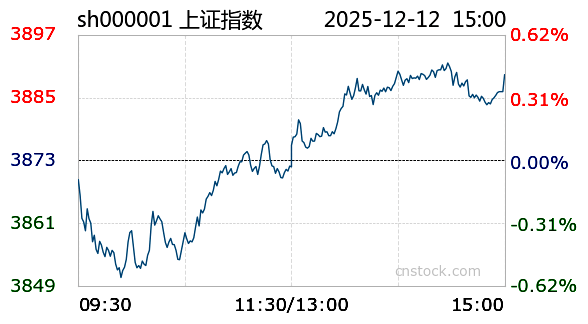 AI小壹12月12日讯 沪市小幅上涨,最高触及3891.81点,最低下探3850.6点,振幅0.41%。截至今日15:00收盘,上证指数报3889.35点,涨幅0.41%,成交额9099.51亿元,成交量5.74亿;深证成指报13258.33点,最高13284.27点,最低13085.42点,涨幅0.84%,成交额1.18千亿元,成交量7.01亿;创业板报3194.36点,最高3203.25点,最低3137.63点,涨幅0.97%,成交额5662.91亿元,成交量2.11亿。