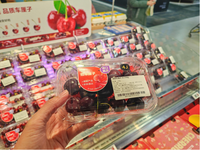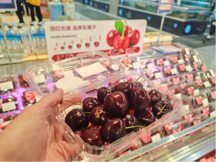 近日,今年首批来自智利的海运车厘子到港,一年一度的“车厘子季”正式拉开序幕。据盒马方面介绍,目前海运车厘子已经上架。今年,智利车厘子的品质更好且个头更大。盒马也首次尝试上线5J的“超大”车厘子,随着海运车厘子陆续到港,车厘子的供应量也将更稳定。 “以前觉得4J已经是‘顶配’了,但现在,即便不是过年,日常购买也非常方便,并且价格越来越亲民,尝鲜的门槛降低了。”一位在北京盒马门店购买车厘子的消费者说。