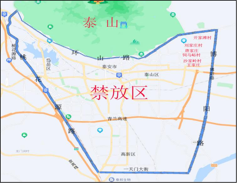 今年我市烟花爆竹仍然采取常态化禁放政策,城区禁放范围是桃花源路暨G3高速公路以东,博阳路以西(含博阳路与碧霞大街交叉口向北延伸线至唐家庄村、刘家庄村、饲马峪村、沙家岭村、亓家滩村、王家庄行政村),环山路以南,高新区一天门大街以北。