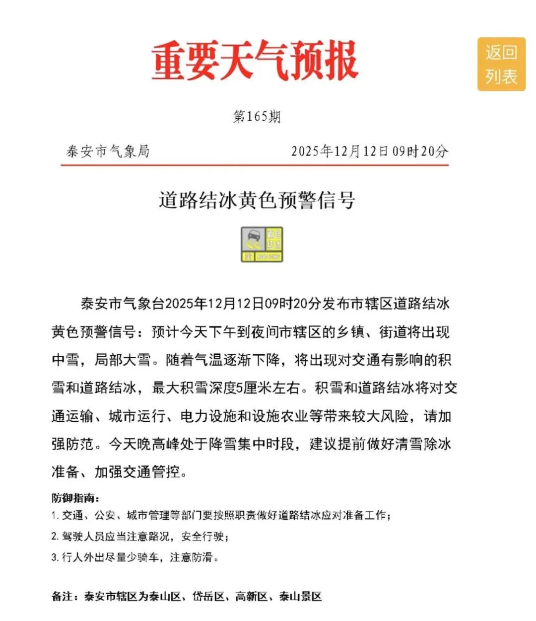 泰山景区、泰安气象 2025-12-12 15:49:55