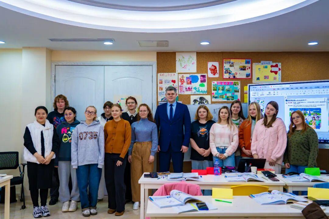 彼得里谢夫还深入课堂,与在校学习的外籍学生进行了交流,详细了解了留学生们的课程学习、校园生活及跨文化适应情况。学生们热情洋溢,积极分享了在山东外国语职业技术大学学习生活的充实体验与成长收获,并对学校提供的学术支持和人文关怀给予了高度评价。