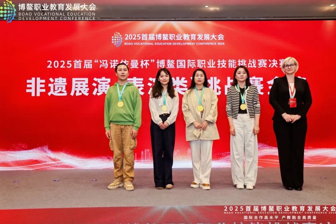 在会议期间举办的“冯诺依曼杯”博鳌国际职业技能挑战赛(国际人文交流赛道)中,德州职业技术学院师生表现优异,展现出扎实的专业功底与出色的综合素养。教师组参赛作品传统京剧《贵妃醉酒》凭借精湛的艺术呈现斩获金奖;由中外学生共同演绎的京剧创新剧《忆不起双娥眉》以融合传统与创新的艺术表达,荣获铜奖。