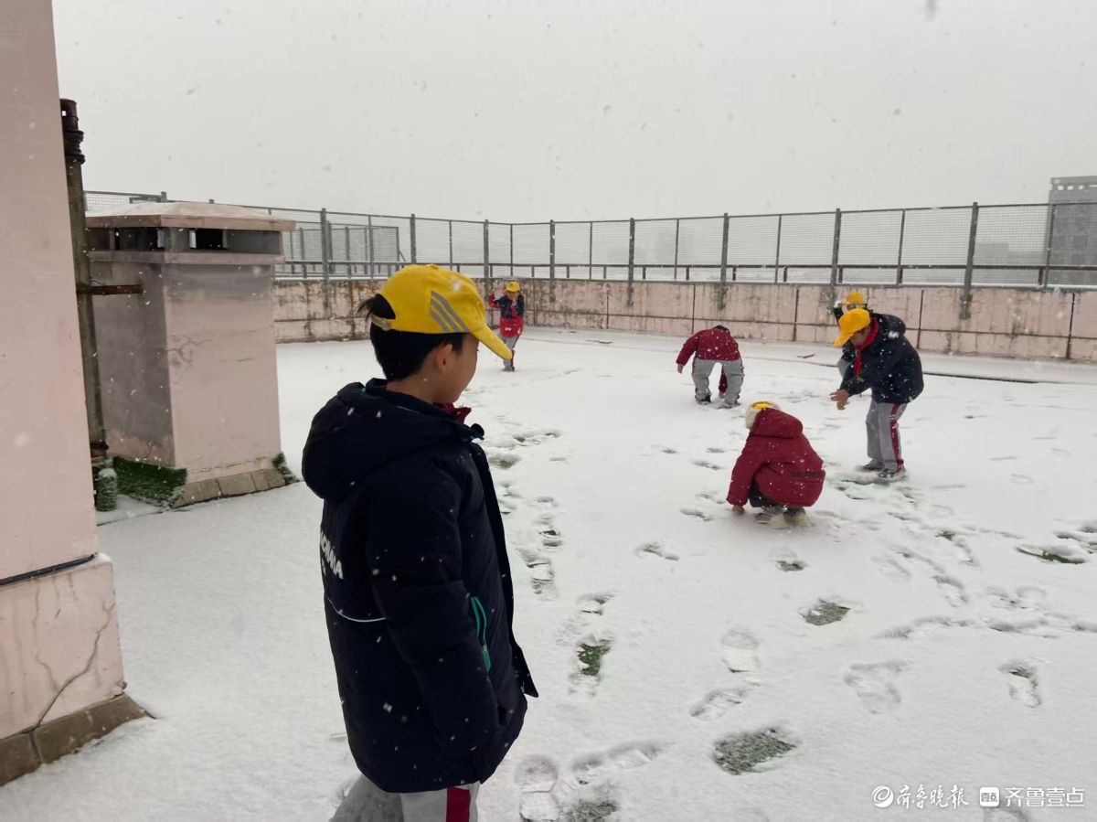 12日,济南迎来初雪,孩子们在雪地里感受冬天的快乐。
