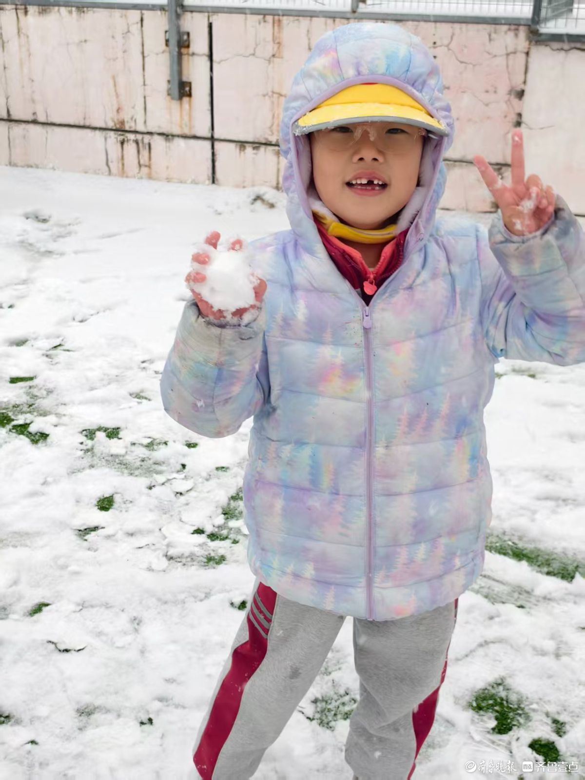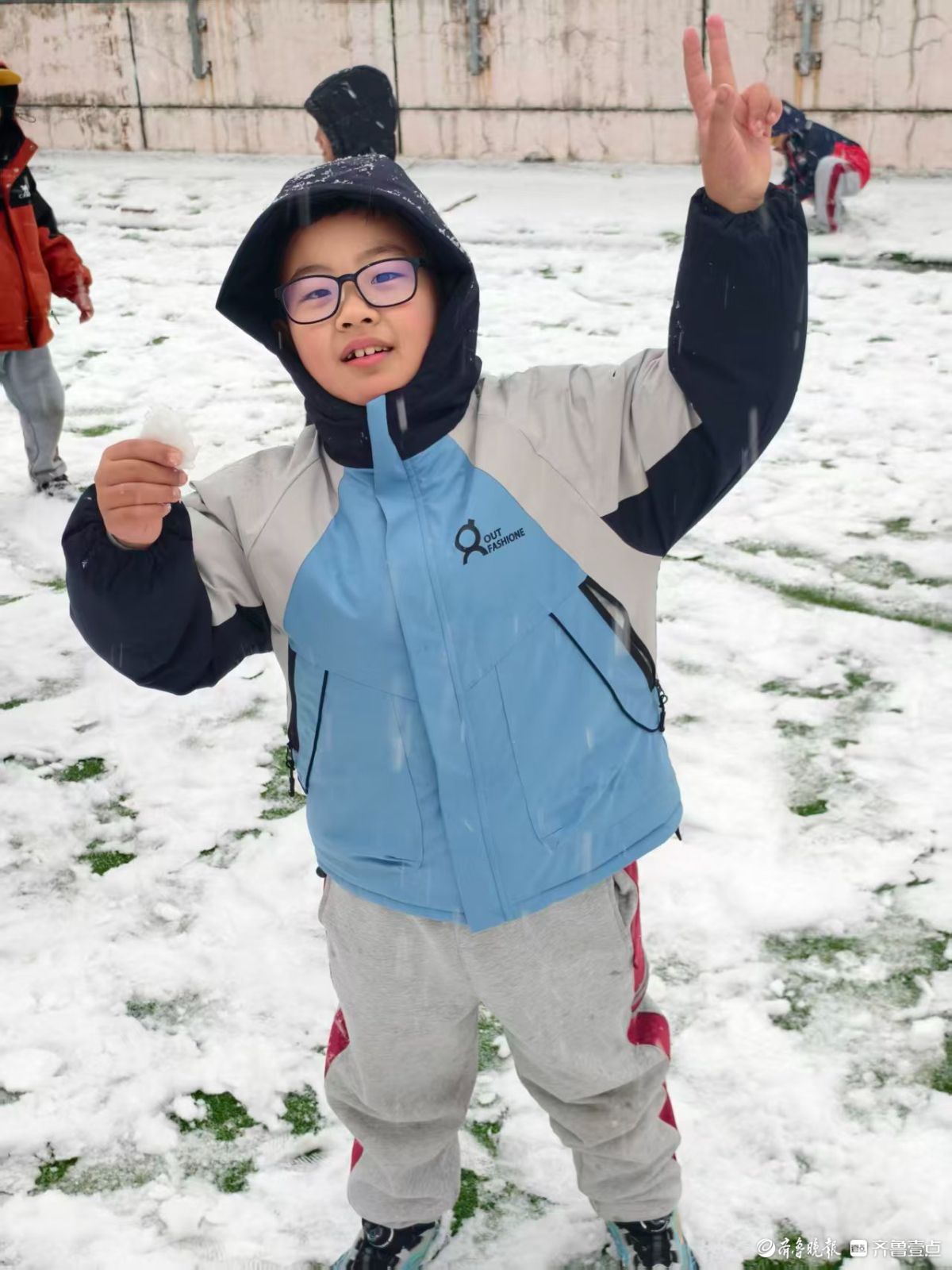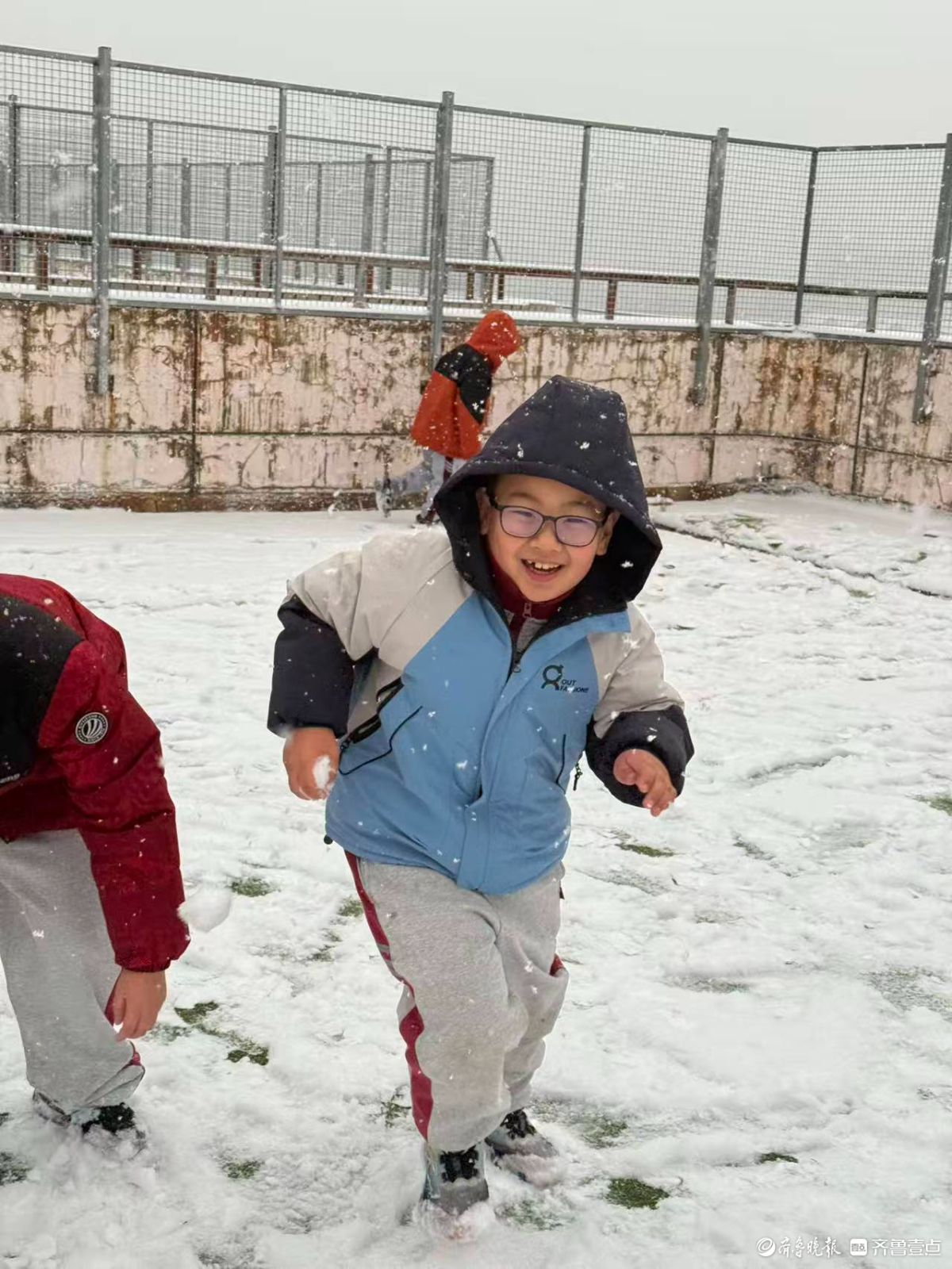 济南迎今冬初雪,孩子们踏雪寻欢