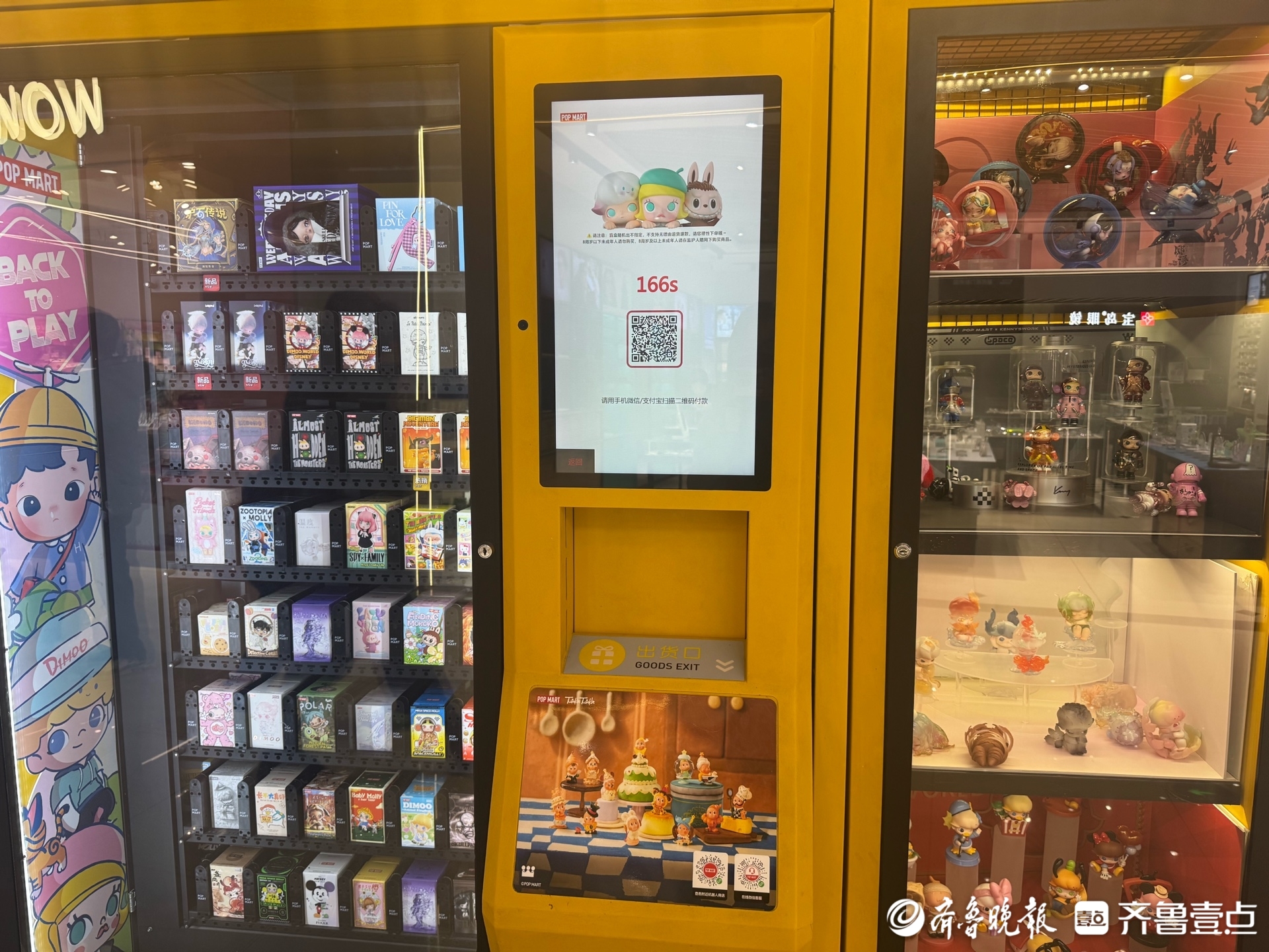 除线下门店外,作为盲盒销售重要渠道的自助贩卖机情况如何?记者走访中看到:济南多家商场中的盲盒自动贩卖机均未设置任何年龄识别或身份核验功能,消费者只需扫码付款,便可直接获取商品。支付页面虽显示“8周岁以上未成年人请在监护人陪同下购买”的提示文字,而前来购买的顾客大多步履匆忙,扫码、付款、取货一气呵成,几乎无人驻足细读屏幕上的提醒信息。