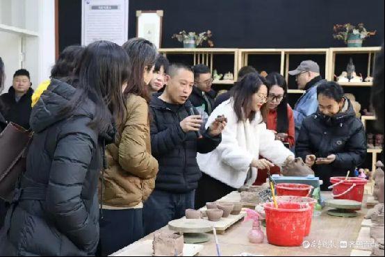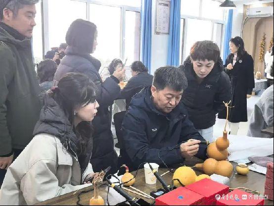 活动中,与会人员听取了聊城四中学校美育工作汇报,并走进学校美术馆,开展了形式多样、内容丰富的参观与交流活动。代表们分组走进东昌木版年画、葫芦、泥塑、书法等学校特色工作坊,详细了解了各工作坊的课程设置、教学模式和育人成效。部分代表还现场参与体验,近距离感受“浸润美育”的生动实践。