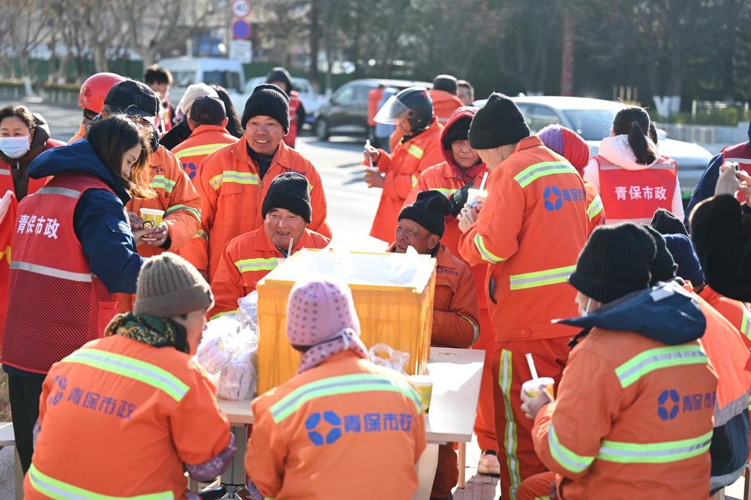 综保集团党委组织开展“党建领航送温暖 情暖综保市政人”志愿服务活动。活动以“精准关怀、贴心服务”为核心,聚焦一线环卫工人冬日作业需求,创新开展“物资慰问+现场服务+需求调研”三位一体关怀行动。现场为100多名环卫工人送上姜汤、保暖手套、防寒帽子、暖宝宝等暖心物资,将浓浓温情传递到市政一线工作者的心坎上。