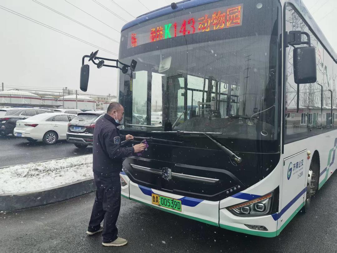 济南公交车辆维修人员提前做好车辆维修保养和安全设施检查,加强对营运车辆刹车制动、灯光、雨刷等安全设施的检查和维修,确保车辆技术状况良好;对应急救援车辆进行检修、检测,确保正常使用。加强车辆能源供应保障,提前对所有充电桩进行了检修维护,确保充电设施正常工作,确保纯电动公交车正常运行。