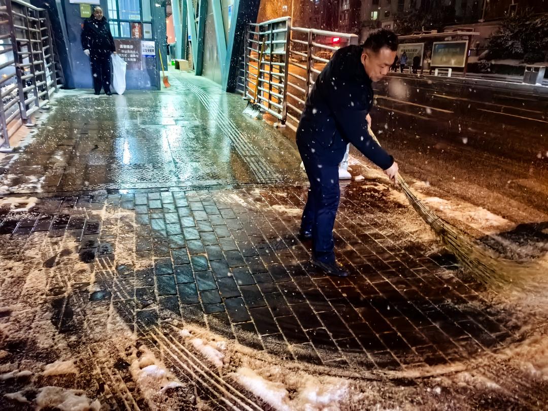 降雪后,济南公交第一时间启动应急预案,各级管理人员做好对所属线路客流节点和危险路段的值守工作,加强监测预警信息通报,实时做好预警信息的第一时间发布和提醒,做好高效响应处置。济南公交提前做好了应急物资准备,配备了融雪剂等应急物资,集团应急突击队员,提前勘查道路通行状况,排除各类安全运行风险,并在道路结冰路段、路口、站台铺撒融雪剂,做好站台清雪的各项准备工作,为市民提供良好候车环境,为市民安全出行保驾护航。